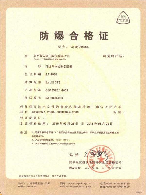 有毒气体防爆证书