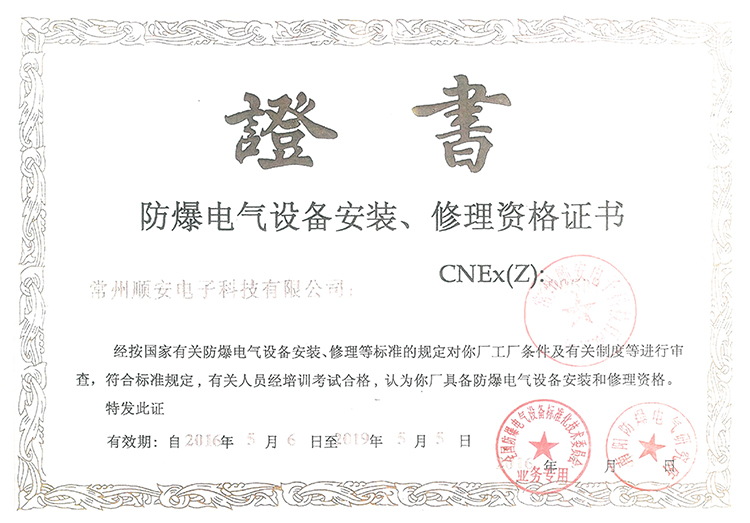 防爆电气设备安装、修理资格证书